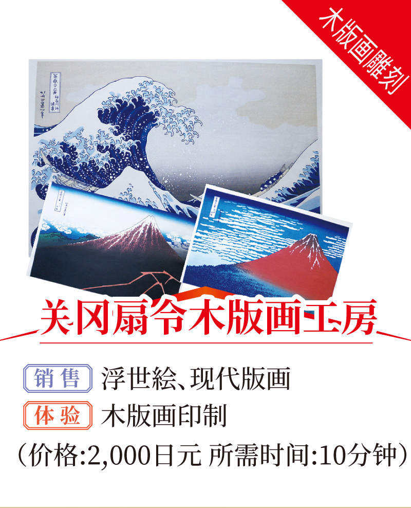 关冈扇令木版画工房、泪桥大岛屋和尚呼的体验项目均可在网上提前预约。